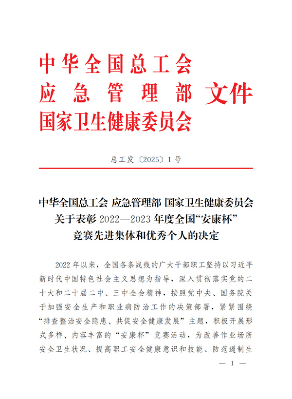 沈陽隆基電磁科技股份有限公司榮獲全國“安康杯”競賽優勝單位稱號。 2025-02-17