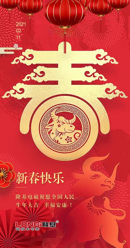 隆基電磁攜員工送上最誠摯的祝福,祝祖國繁榮富強,祝隆基再創輝煌,祝大家新年快樂! 2021-02-08