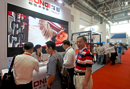 這是冶金行業(yè)內(nèi)世界第二大展覽會(huì),每?jī)赡昱e辦一次。來(lái)自德國(guó)、意大利、西班牙、美國(guó)、中國(guó)臺(tái)灣等國(guó)內(nèi)外近兩千家企業(yè)參展,展會(huì)規(guī)模為繼德國(guó)杜塞爾多夫冶金、鑄造展之后本領(lǐng)域內(nèi)全球第二大展會(huì)。此外,國(guó)內(nèi)知名的大型鋼企如:包鋼、鞍鋼、首鋼、武鋼、太鋼、中鋼設(shè)備、東北特鋼等都到場(chǎng)參展,這些大型鋼鐵集團(tuán)同時(shí)也是隆基的合作伙伴。隆基在展會(huì)上現(xiàn)場(chǎng)演示了鋼渣帶磁機(jī)及全自動(dòng)永磁起重器,鋼渣、水渣產(chǎn)品展柜吸引了大批專業(yè)觀眾前來(lái)咨詢,行業(yè)產(chǎn)品規(guī)劃及現(xiàn)場(chǎng)案例讓觀眾們了解到隆基產(chǎn)品的現(xiàn)場(chǎng)實(shí)際應(yīng)用情況,工作人員與眾多冶金行業(yè)客戶進(jìn)行了深入交流,得到用戶的一致好評(píng)。