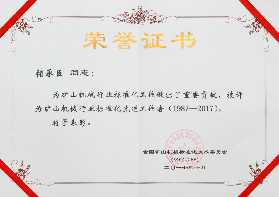 多年來,張承臣董事長致力于礦山機械行業(yè)標準化的執(zhí)行,加強公司標準化管理,推進標準化進程。