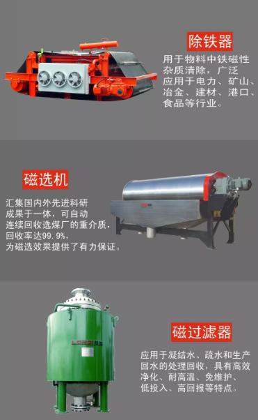 公司創立初,就以除鐵器為切入口,成功進軍磁選裝備制造領域,經過不斷地研發創新,擁有了完善的產品體系,滿足了煤炭、電力、化工、造紙、建材、港口、食品等行業不同的磁選需求。