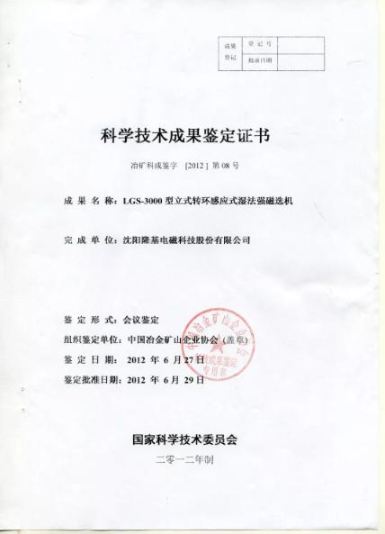 經(jīng)國(guó)家技術(shù)科學(xué)委員會(huì)認(rèn)定,隆基LGS系列立式轉(zhuǎn)環(huán)感應(yīng)式濕法強(qiáng)磁選機(jī)達(dá)到國(guó)際領(lǐng)先水平,在強(qiáng)磁選機(jī)的技術(shù)進(jìn)步上具有重要意義。