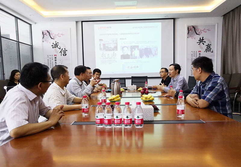 6月9日,蘭州大學物理學院羅洪剛院長一行蒞臨沈陽隆基拜訪董事長張承臣、董事兼總經理趙能平、董事李春安三位創辦沈陽隆基的蘭大校友,并參觀了廠區。沈陽隆基技術總監李恒盛、銷售總監徐家林、營銷總監李朝朋及在公司任職的蘭大優秀畢業生參加了此次交流活動。