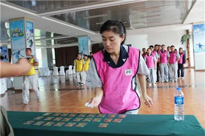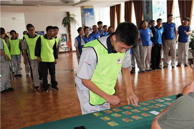 活動伊始,在拓展教練的指導下,參訓員工分成六個隊伍,通過選隊長、取隊名、繪隊標、定隊歌等,快速地融入了各自的團隊。