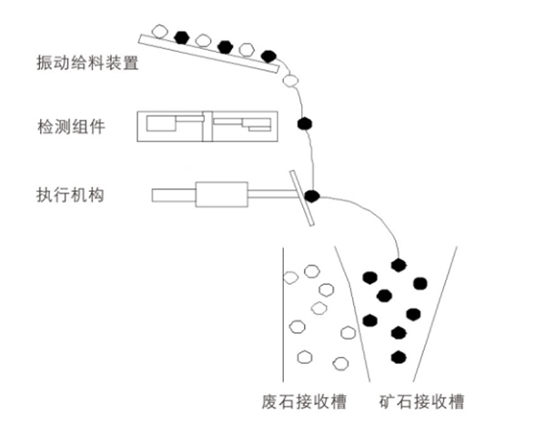 LPPC分選機就是根據(jù)X射線熒光原理設計的,其分選的工作原理如下圖。