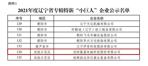 近日,隆基電磁成功入選2021年度遼寧省專(zhuān)精特新“小巨人”企業(yè)。