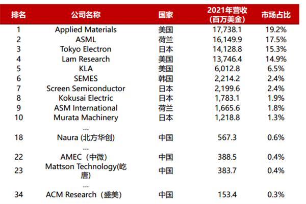 2022年中國大陸連續三年成為全球半導體設備最大市場