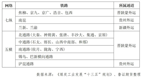 我國“七縱五橫”煤炭鐵路運輸通道